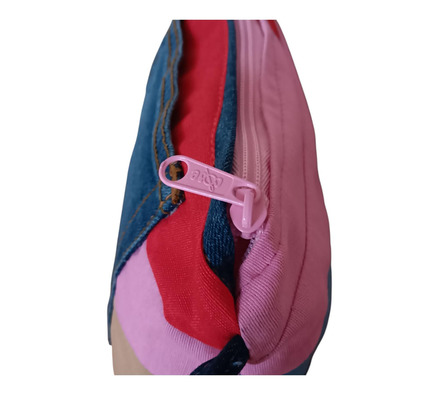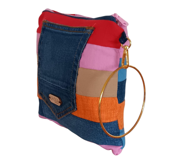 Este conjunto artesanal de La Osa Artesana une dos piezas únicas: un bolso de mano hecho con retales de telas recicladas y un monedero en forma de pirámide a juego. Ambos elaborados a mano, combinan colores, texturas y materiales recuperados, transformando los restos de tela en auténticas piezas de diseño sostenible.
