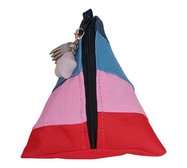 El bolso cuenta con bolsillo exterior y aro para llevar en la mano, mientras que el monedero piramidal es compacto y funcional, ideal para monedas, llaves o pequeños accesorios. Juntos forman un conjunto práctico, original y lleno de encanto artesanal.