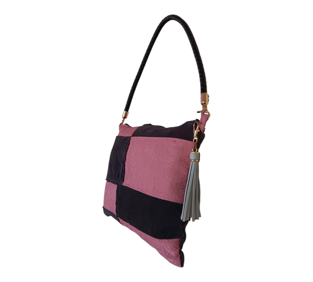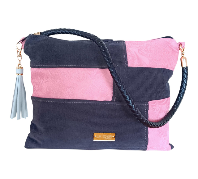 Confeccionado a mano con pana reciclada en un gris ceniza elegante y combinado con tela damasco en un delicado rosa antiguo, este bolso nace para acompañarte en días llenos de calma, inspiración y pequeños descubrimientos. 🌸🩶 Con un tamaño cómodo de 30 × 22 cm, resulta perfecto para llevar lo esencial sin renunciar a la elegancia.