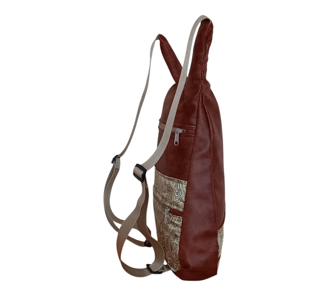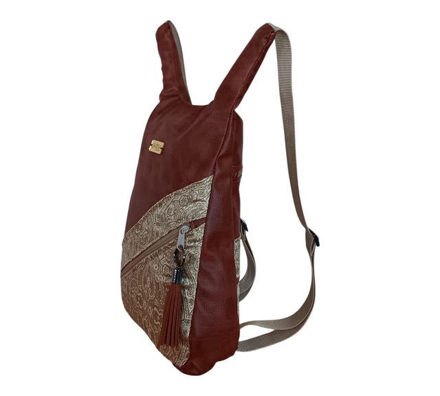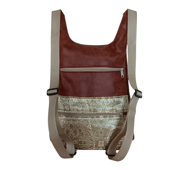 Como un pequeño tesoro preparado para acompañarte cada día, esta mochila nace de la calidez del color cuero y el brillo delicado del damasco dorado. 🌅✨
