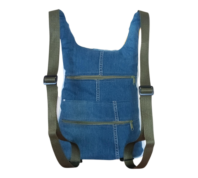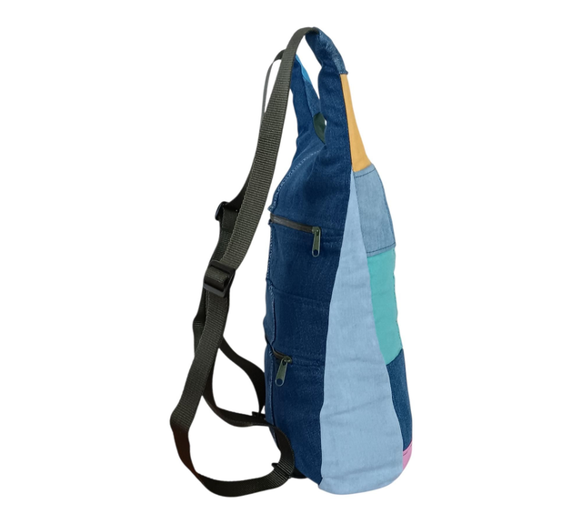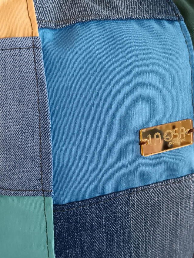 Nacida de segundas oportunidades, esta mochila está confeccionada con tela vaquera reciclada y retales de colores que cuentan su propia historia. Cada combinación es única, como quien la lleva 🌈💫