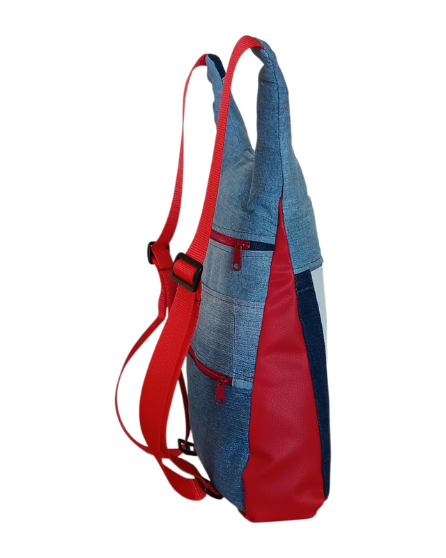 En su interior encontrarás un bolsillo práctico para mantener tus esenciales organizados, además de un bolsillo posterior exterior con cremallera trasera para mayor seguridad. Las asas regulables en rojo, a juego con las cremalleras, completan esta creación con armonía y carácter.