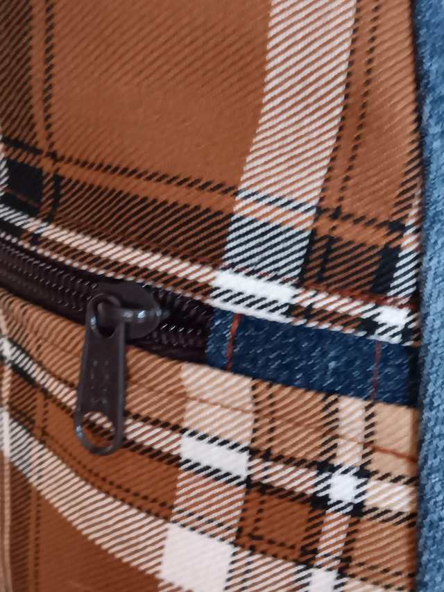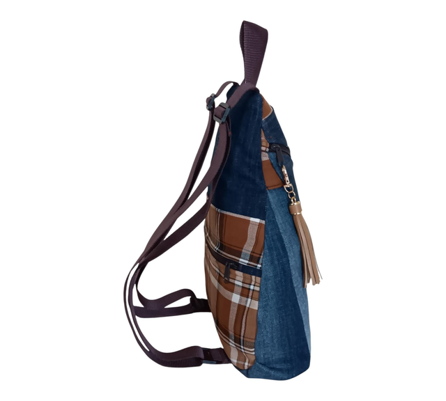 Sostenible, práctica y con mucho estilo. Esta mochila mini está elaborada a partir de tela vaquera reciclada combinada con cuadros escoceses, creando un diseño único y responsable con el medio ambiente.