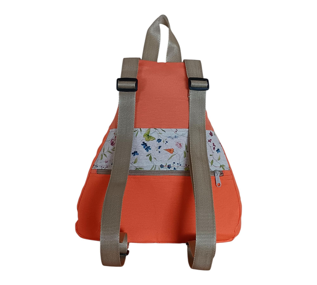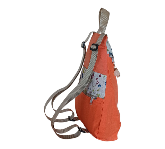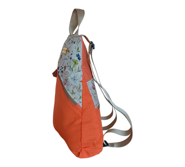 Suave, alegre y totalmente artesanal 🍊✨. Esta mochila mini en tono naranja, combinada con un delicado estampado floral, es perfecta para quienes buscan un complemento con encanto y personalidad.