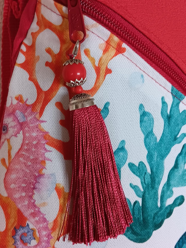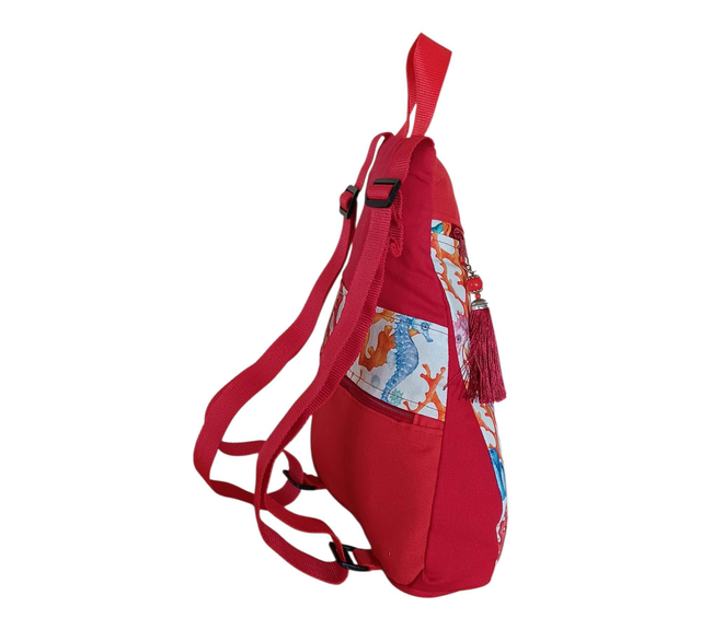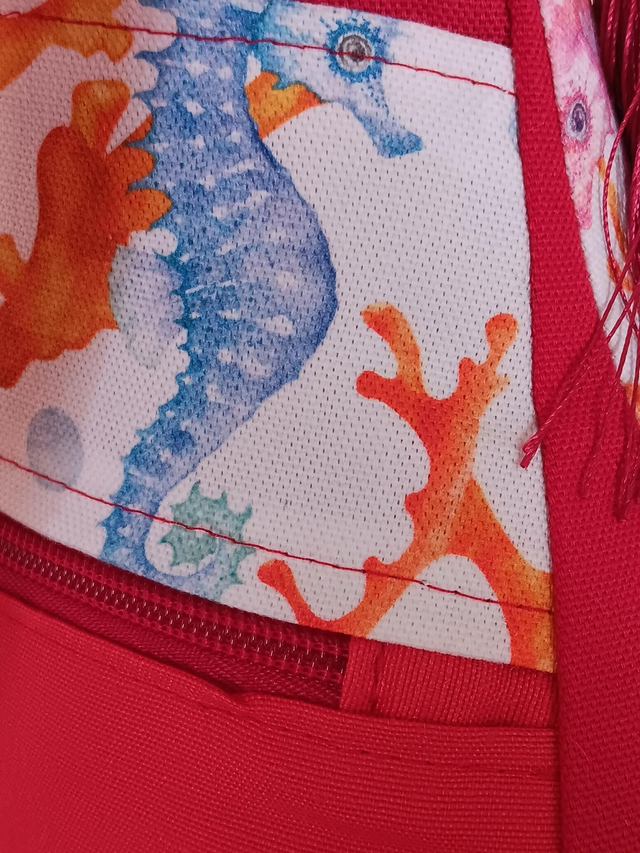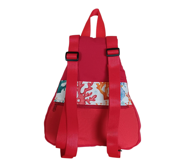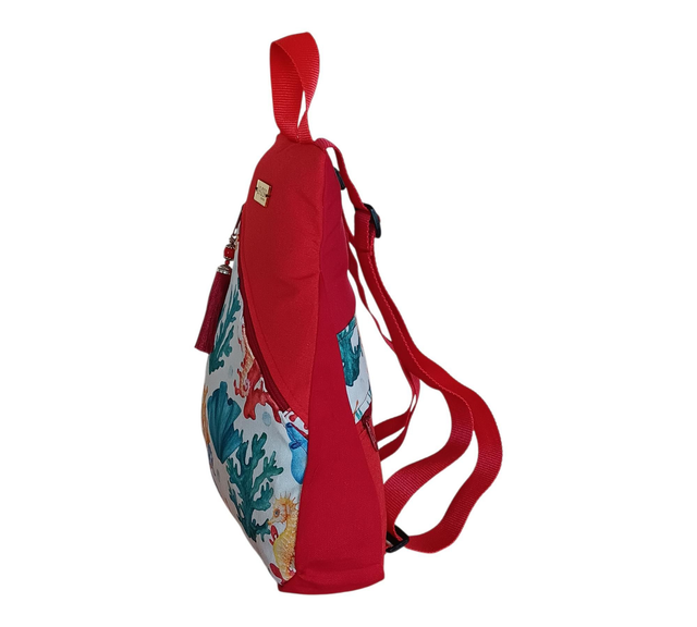 Inspirada en el mar y el verano, esta mochila mini con estampado coral y caballitos de mar combina tonos cálidos y alegres con un toque de rojo que la hace irresistible. ❤️