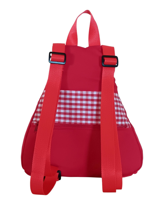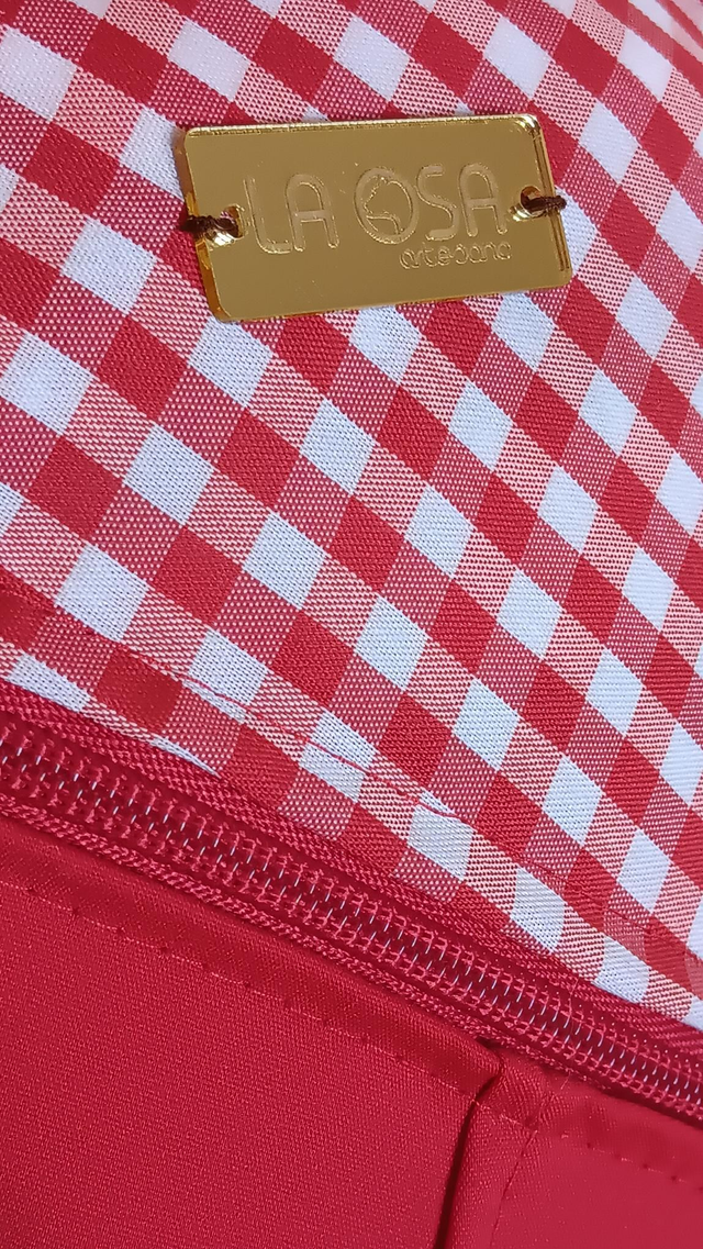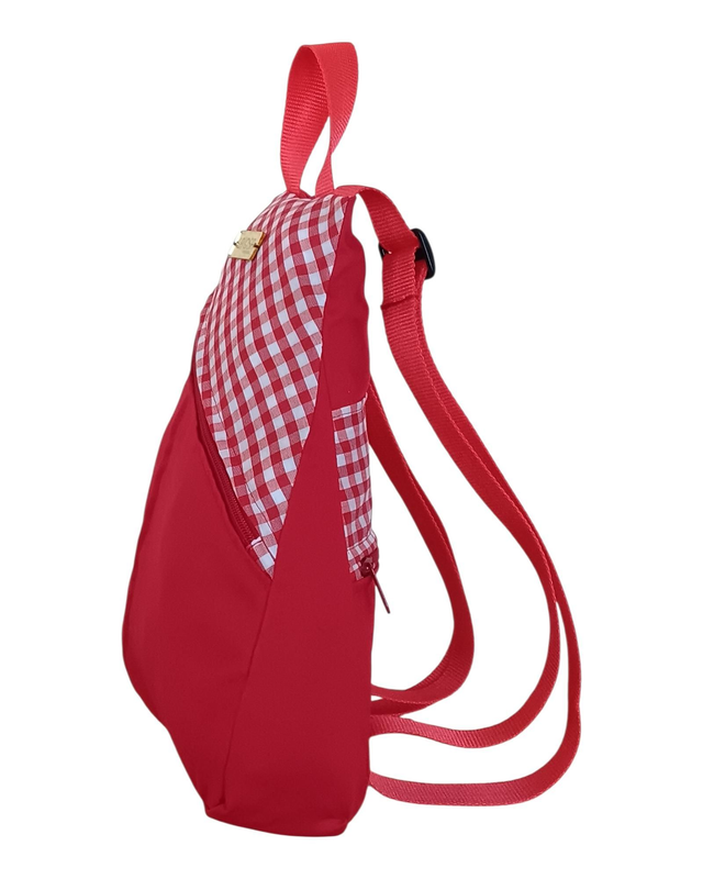 Esta mochila mini roja nace del amor por las telas recicladas y los detalles que cuentan historias. El rojo intenso se combina con un vichy en el mismo tono, creando un juego clásico y alegre que nunca pasa de moda.