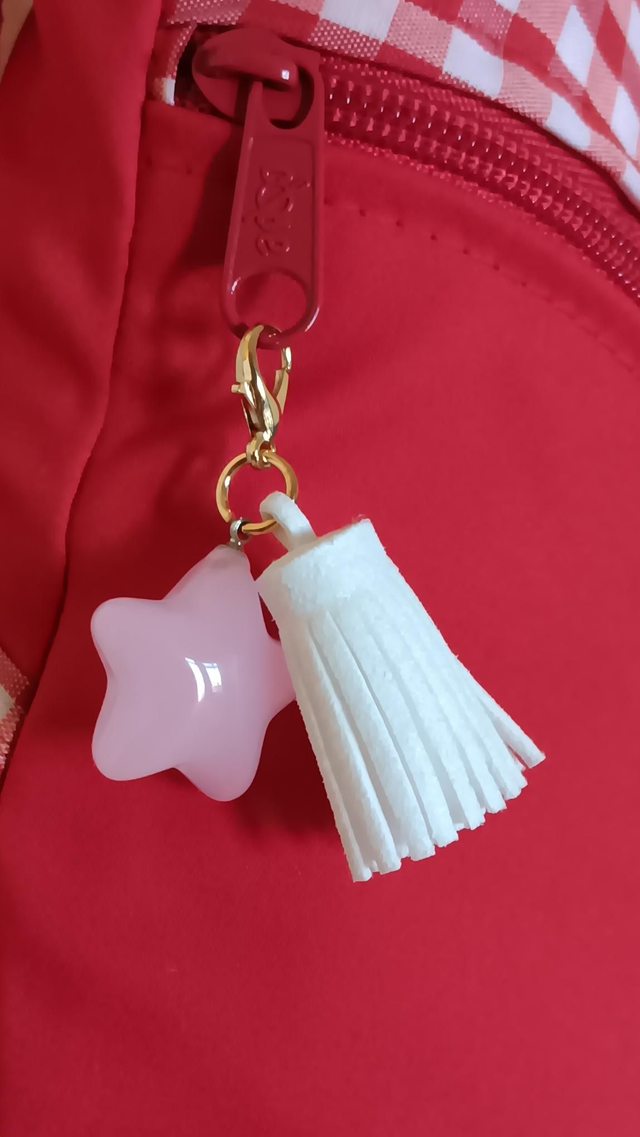 Cuenta con bolsillo interior y bolsillo posterior, perfectos para llevar lo esencial bien organizado. Sus cintas regulables se adaptan cómodamente a ti, y como broche final, unas borlas de piel vegana junto a una delicada estrella que le dan ese aire mágico tan propio de La Osa Artesana ✨