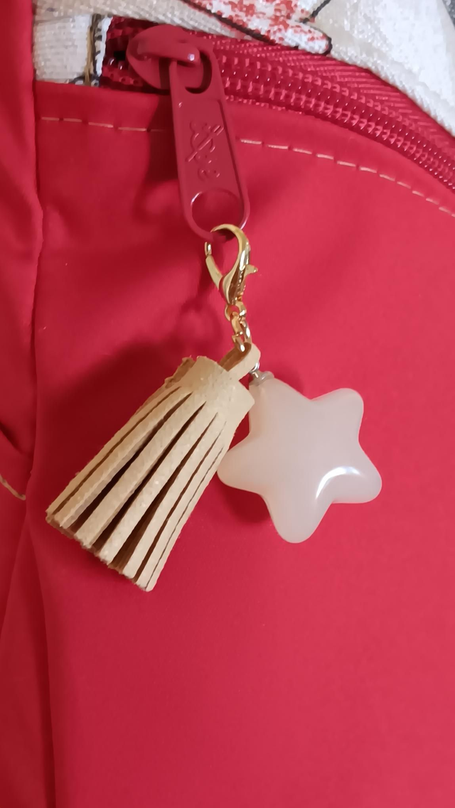 Incluye bolsillo interior y bolsillo posterior para mantener todo en su sitio, cintas regulables para mayor comodidad y una preciosa borla de piel vegana acompañada de una estrella, como pequeño amuleto artesanal ✨