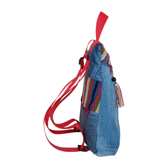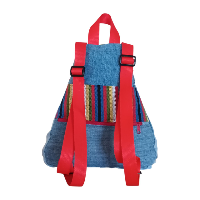 Esta mochila mini en tela vaquera se llena de alma con sus detalles en tejido de traje típico graciosero, aportando carácter, tradición y un encanto muy especial.